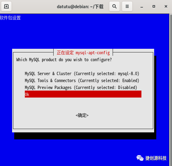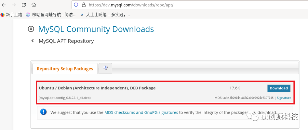 MySQL Community Server 然后选择Debian时会出现建议使用 Mysql APT Repository。所以我们下载安装 Mysql APT Repository 的方式更新 APT Repository 之后使用 dpkg -i