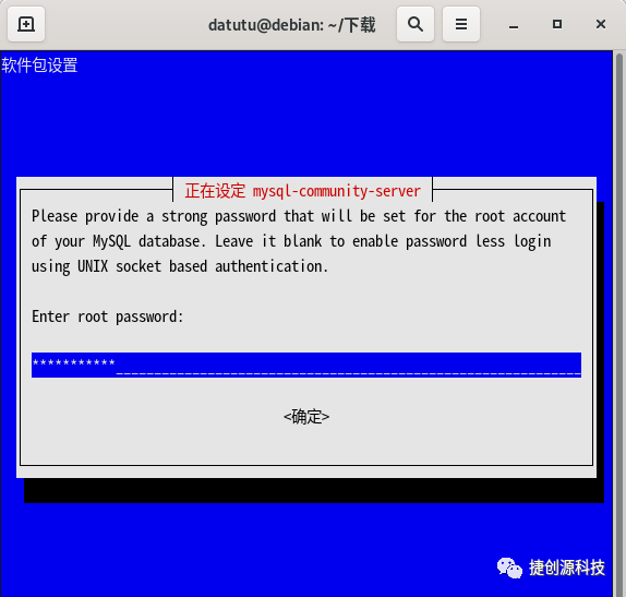 会出现 root 密码,输入设置2次即可