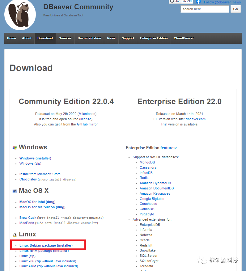 可以从DBeaver官网下载DBeaver Linux Debian社区免费版,如下图: