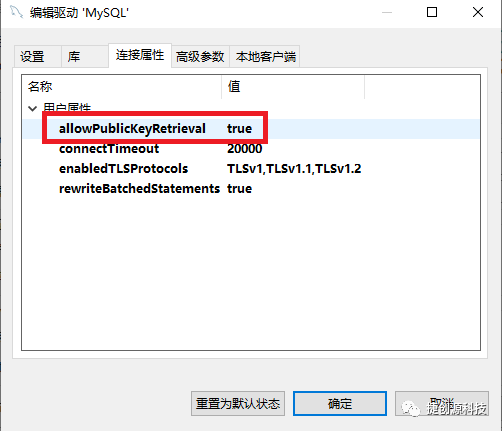 需要下图单击“编辑驱动设置”按钮,按照下图步骤添加allowPublicKeyRetrieval=true