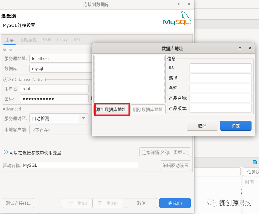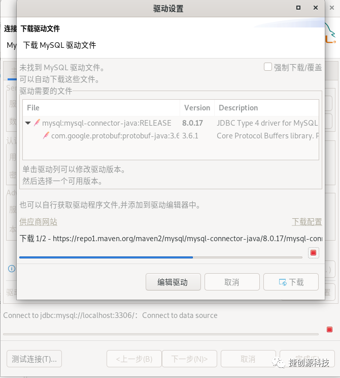 本地客户端已添加上MySQL数据库路径,再次测试连接下,会下载MySQL驱动文件。