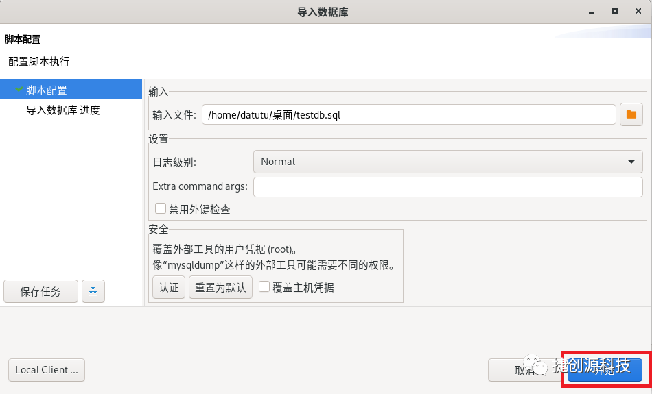 4.还发现一个问题,本地客户端不存在,需要手动添加本地客户端MySQL数据库地址,后面才能对数据库导入和导出操作。通过whereis mysql