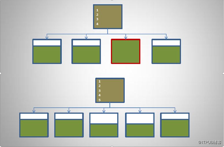 由于不断的索引叶块分裂需要将新的leaf block的信息加入到branch block中,当branch block没有足够空间容纳新的记录时,又会引发branch block的 Split。 即将一半记录移动到新的branch block中。