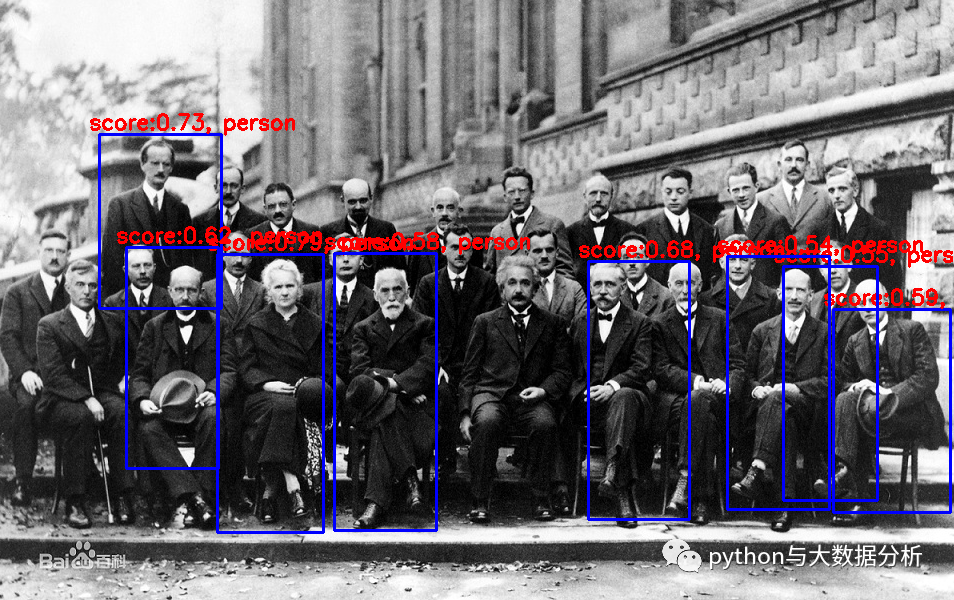 mobile-net SSD通过矩形框的方式标注整个人,可以看到对于遮挡的人识别率较低。