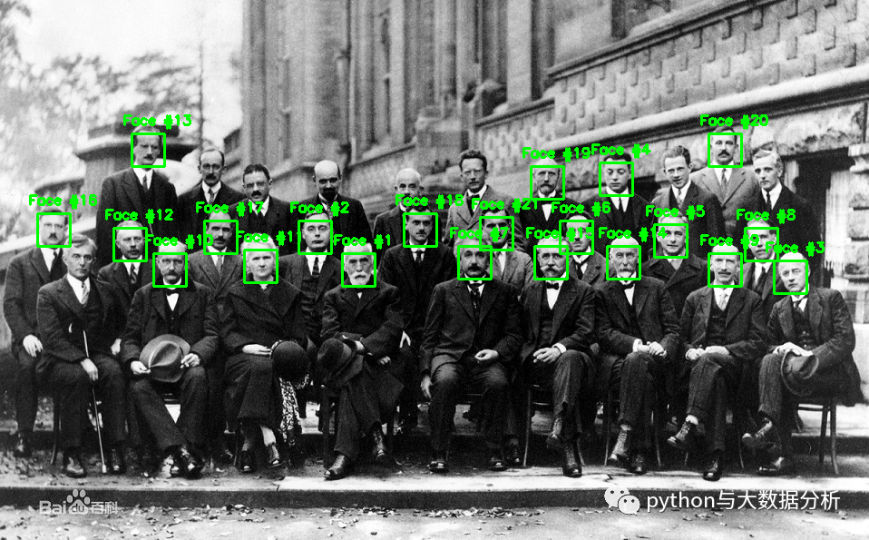 1927年在比利时布鲁塞尔召开的第五次索尔维会议,黑白照片,检测出21人