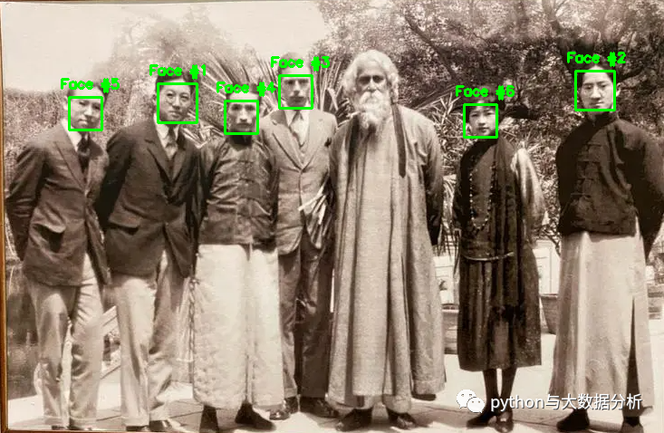 1924年林徽因等与访问中国的泰戈尔合影,共7个人,重要的泰戈尔没检测出来