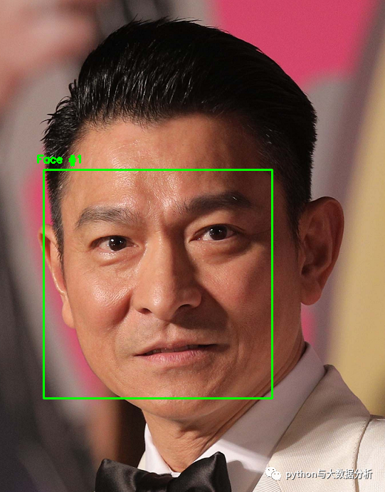 使用训练好的模型shape_predictor_68_face_landmarks.dat,在检测出人脸的同时,检测出人脸上的68个关键点,再看一下刘德华