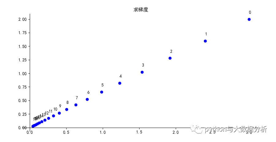 基于前文关于梯度下降法的理解,用python实现梯度下降求解,不过本文不具有通用性,关于求导缺乏通用性,关于梯度也未考虑很多因素,可以看到学习率很低,则收敛较慢,需要大量时间学习,学习率很高,则收敛很快,但有可能找不到极小值。本文只是浅尝辄止。