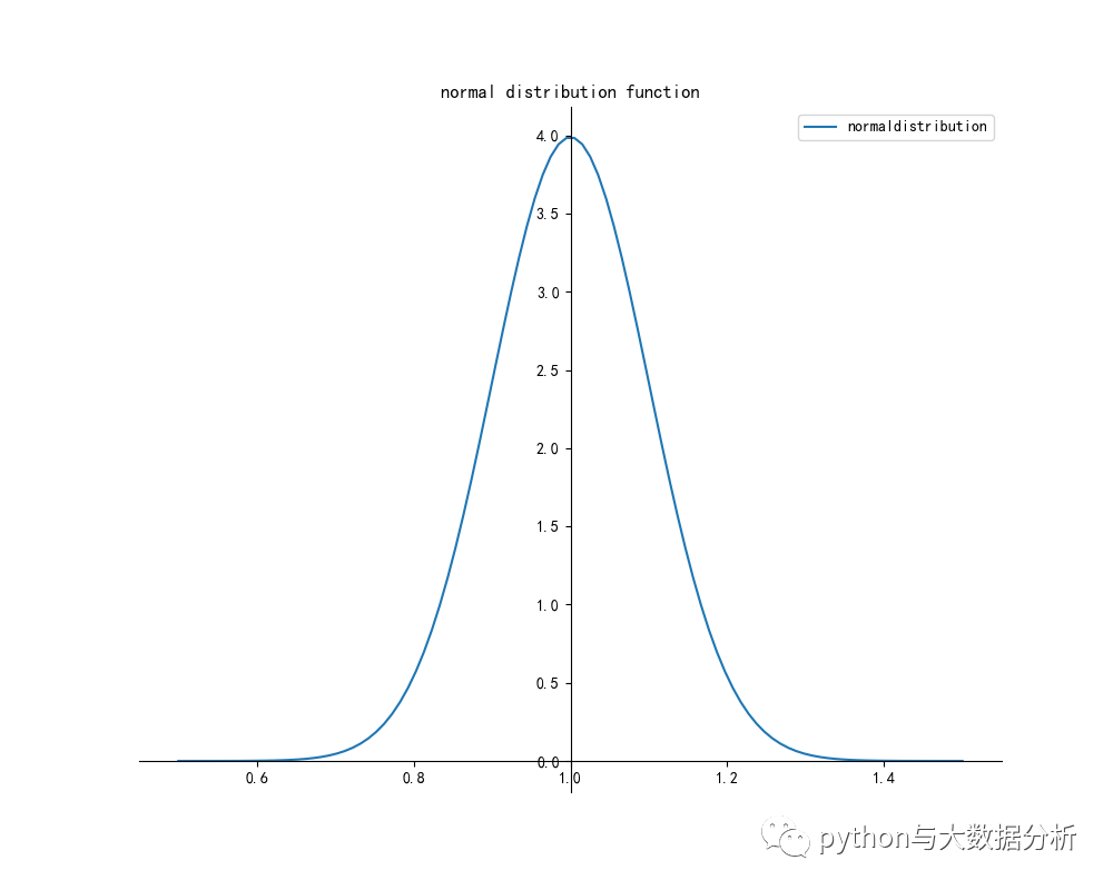 drawpic(x, y, 'normaldistribution', 'normal distribution function')