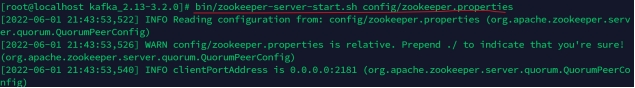 bin/zookeeper-server-start.sh config/zookeeper.properties