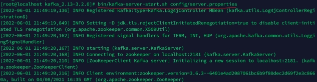 执行bin/kafka-server-start.sh config/server.properties启动Kafka。