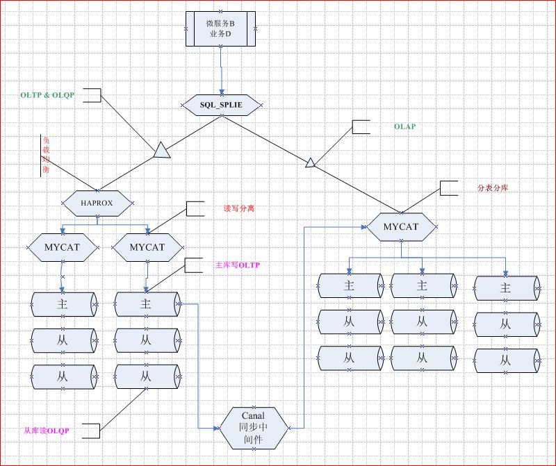 这图有点复杂 跟第一张图呼应! 这架构把分表分库 与正常业务分开。