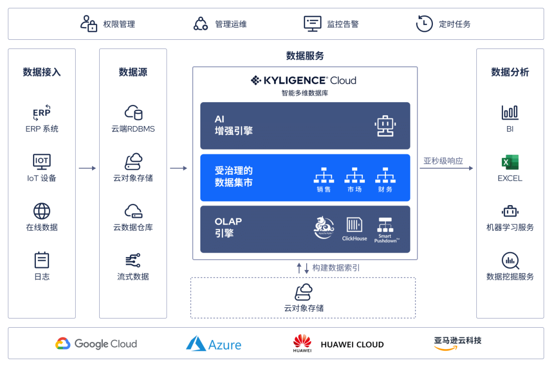 Kyligence 云原生智能多维数据库平台,利用云原生的计算和存储,助力企业在数据湖上构建快速、弹性、成本最优的创新大数据分析应用,目前已支持在微软 、亚马逊云科技、华为云和谷歌云等平台。