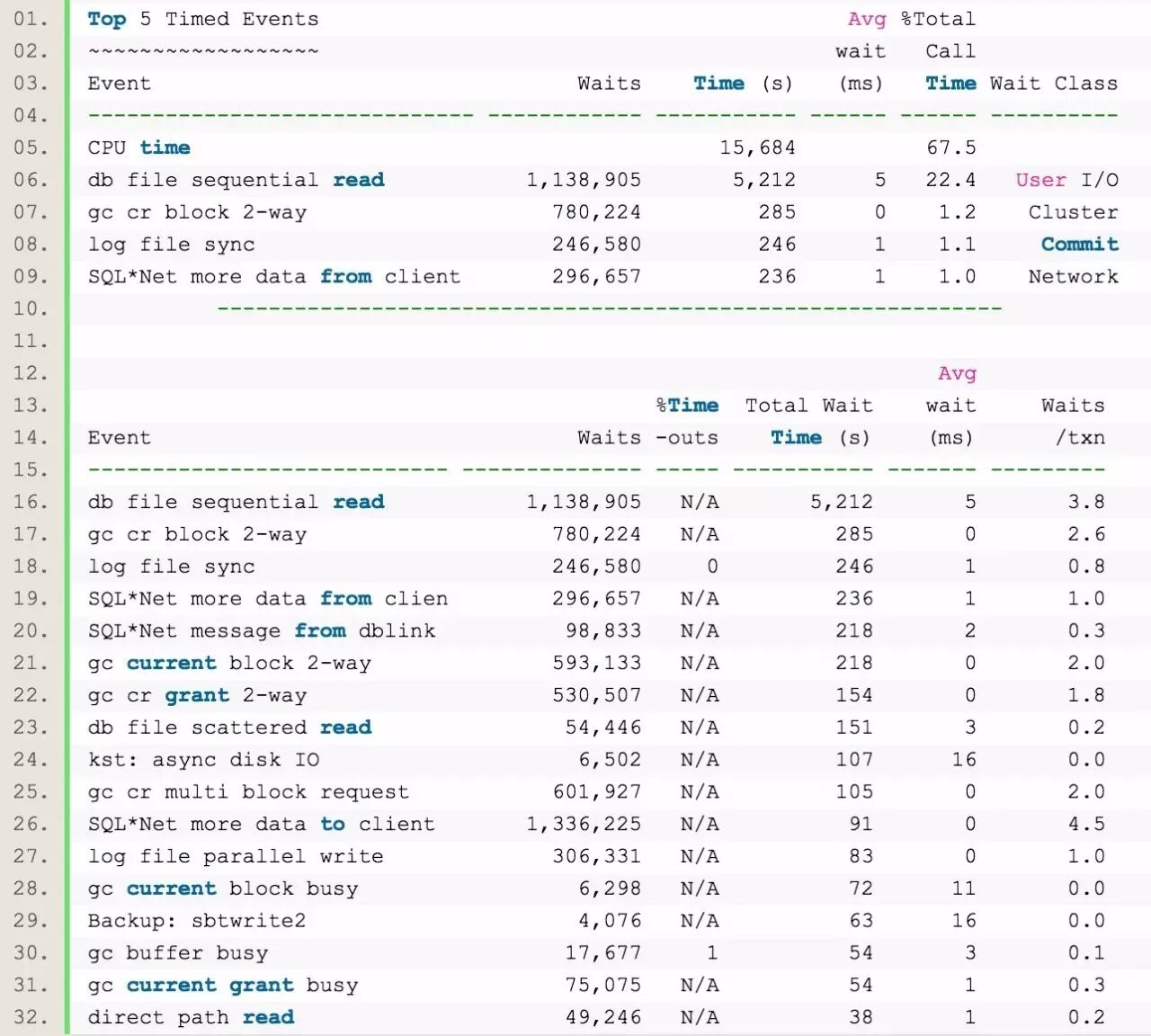从上面的数据还可以看到,除了TOP 5等待,还有: