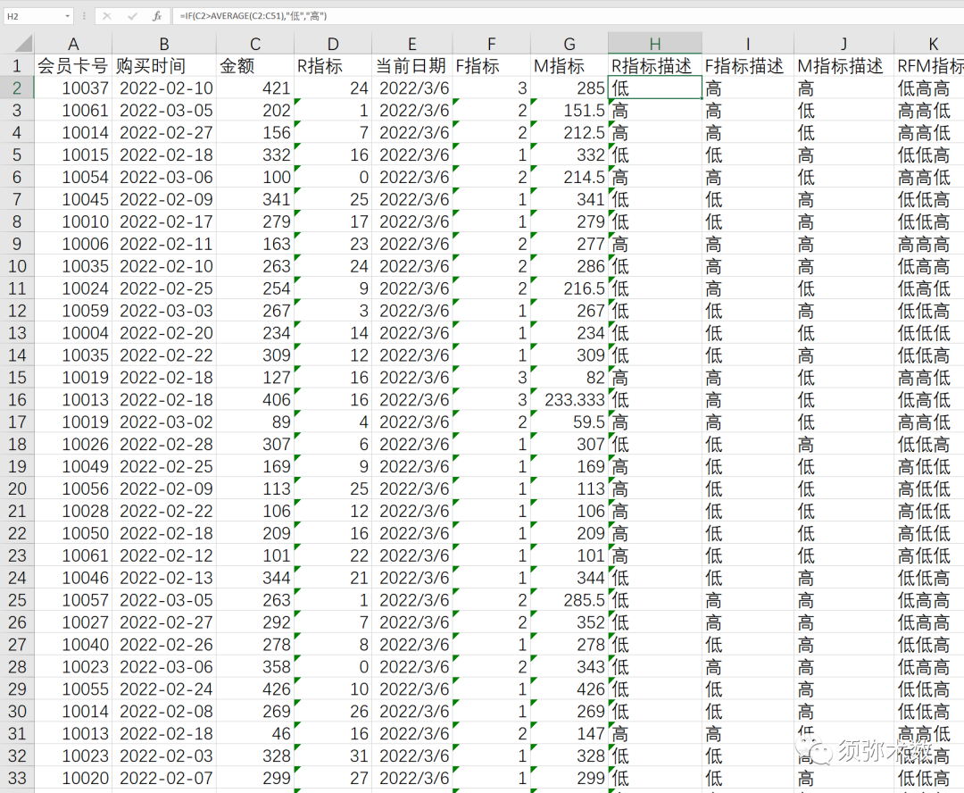 得出这三个函数之后,计算出各指标的平均值,分别计算出各会员的价值后再进行客户价值层次划分。(这里要注意频次高度与平均数的大小关系)