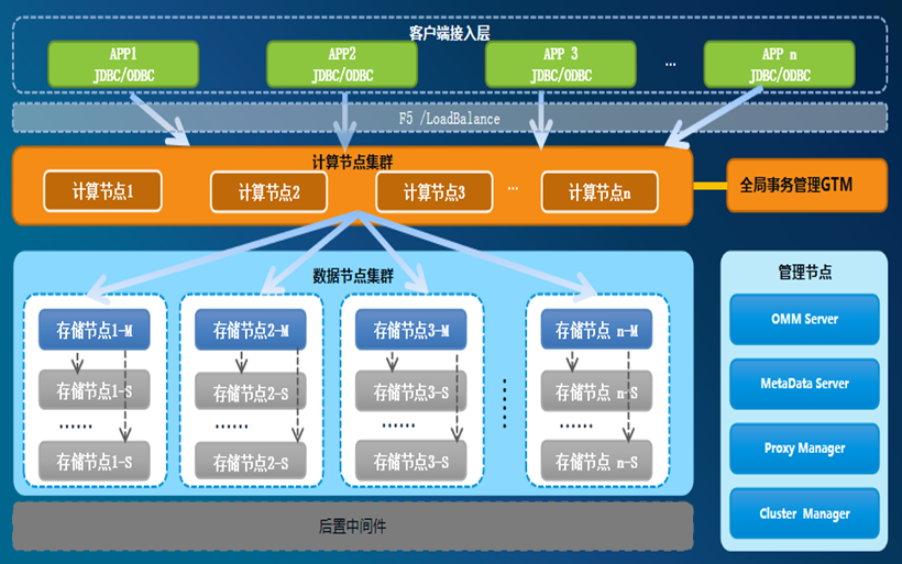 从图上看基本上和中间件MYCAT没啥区别,唯一区别是在右下角这块,应该是管理节点.还有个GTM的管理思路.