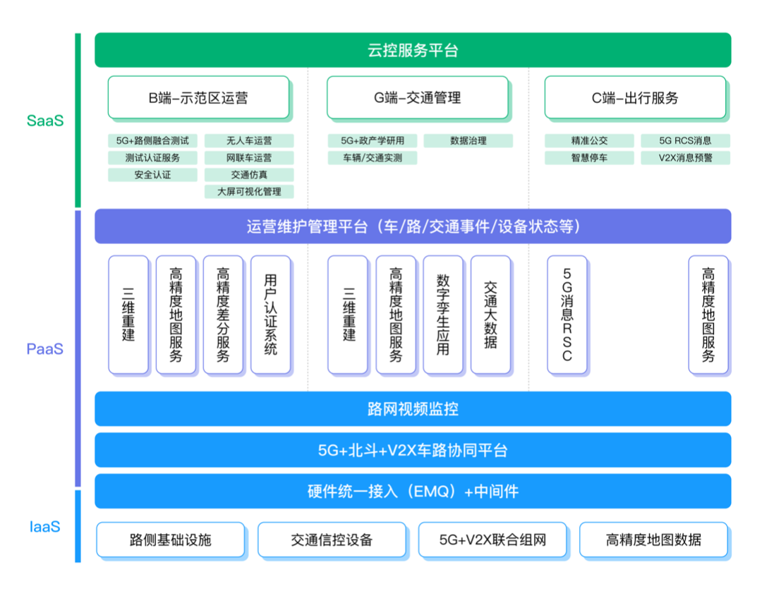 该项目打造了具备出行服务、智慧车辆管控、智慧设备管理、信息发布、协同感知、数据融合、协同决策以及持续演进能力的云控平台,形成了以基础设施环境支撑产业服务平台、以产业服务平台促进场景应用、以场景应用建立运营管理机制、以运营管理完善基础设施环境的良性循环。