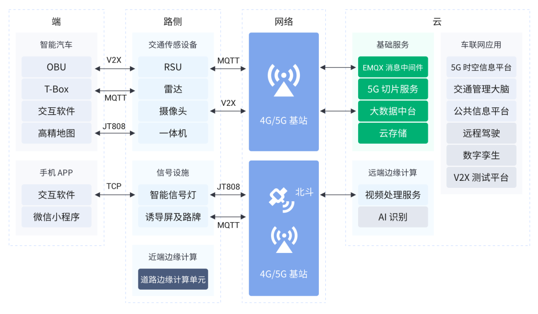 在重庆两江协同创新区的车路协同架构中,中移动上海研究院采用了 EMQ 提供的云原生分布式物联网消息服务器 EMQX 作为核心消息处理系统,完美解决了业务面临的物联挑战。