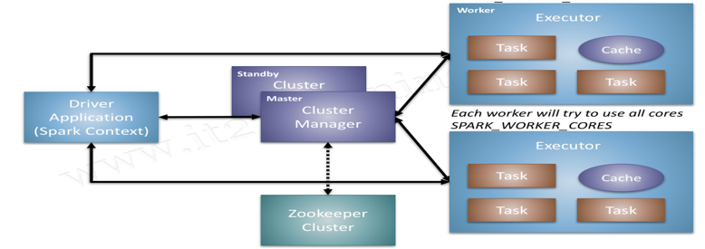 SparkContext是Spark编程的入口,一个JVM中只能有一个SparkContext,如上图的DriverApplication就相当于程序中的Main函数,其向资源管理器申请资源,资源申请后会反馈给Driver进程,之后Driver就可以直接与Executor交流了,Driver分配任务给Executor,实际执行任务的是Executor,Task是最小的执行单元,其数量由分区数量决定。这里只是简单的说明了一下,如果有兴趣,可以理解一下DAG,Stage的划分,Stage又是一组可以并行执行的Task集合。