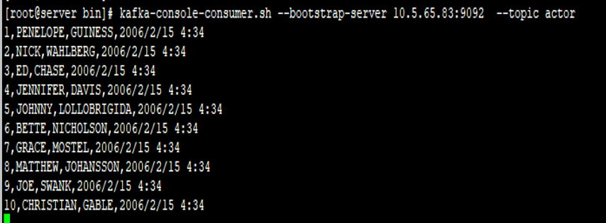 可见并没有数据插入到mysql,现在生产10条数据到kafka: