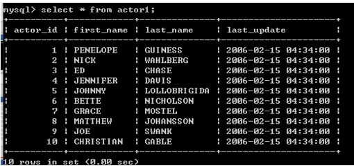 Mysql目标表为actor1,有actor_id,first_name,last_name,last_update个字段