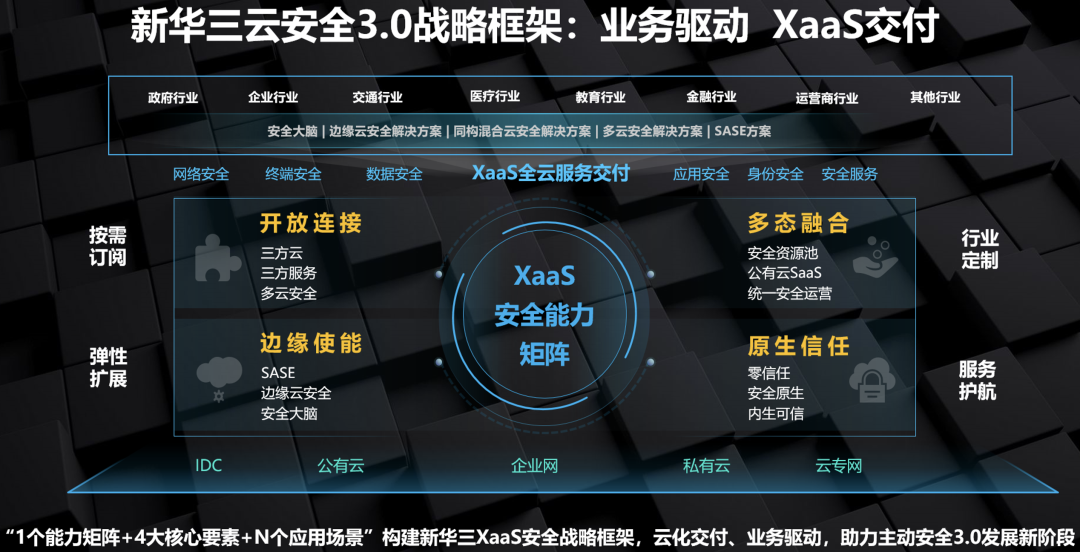 云安全发展至今,市场已经进入深度实践融合和纠错阶段,实用主义才是王道,解决问题才是本领。面对客户复杂的业务场景,如何让多云管理真正有效、便捷地实行起来,新华三通过充分的客户实践得到了当前阶段的最优解。一切皆服务(XaaS),在“主动安全3.0”理念指导下,新华三坚持客户至上的原则,以业务驱动为使命,为百行百业用户数字化转型保驾护航。