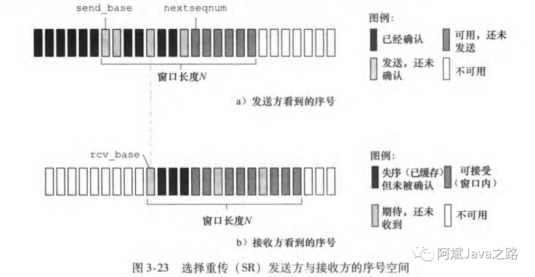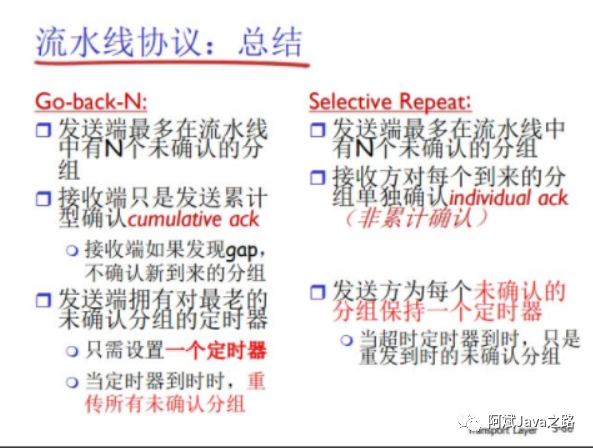 :发送方未接收到分组的ACK时,只会重新发送单个分组,而不会发送所有分组。