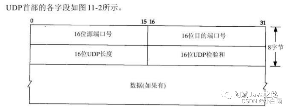 UDP长度,总共16位,占两个字节 UDP报文长度=UDP报头(首部)+UDP载荷 该字段保存了UDP报文的长度,单位为字节 2个字节能表示的数据范围是0~65535,也就是能够表示的报文长度是65536字节(Byte),转换成KB,65536/1024 = 64 KB 这就是一个UDP报文所能表示的最大长度.