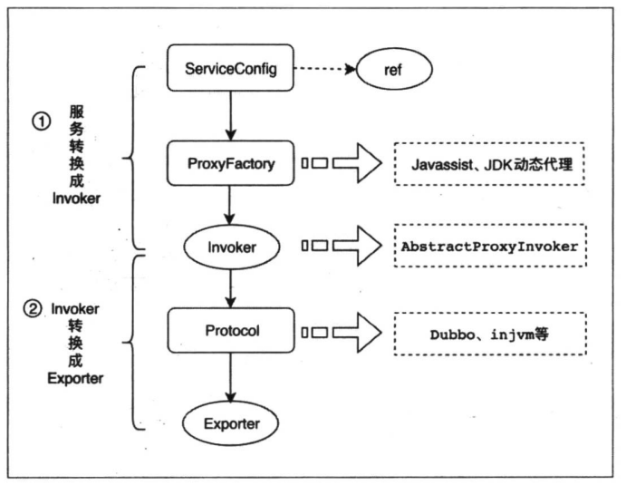 ProxyFactory 是动态代理,用来创建 Invoker 对象,实现代理使用 JavassistProxyFactory和 JdkProxyFactory。