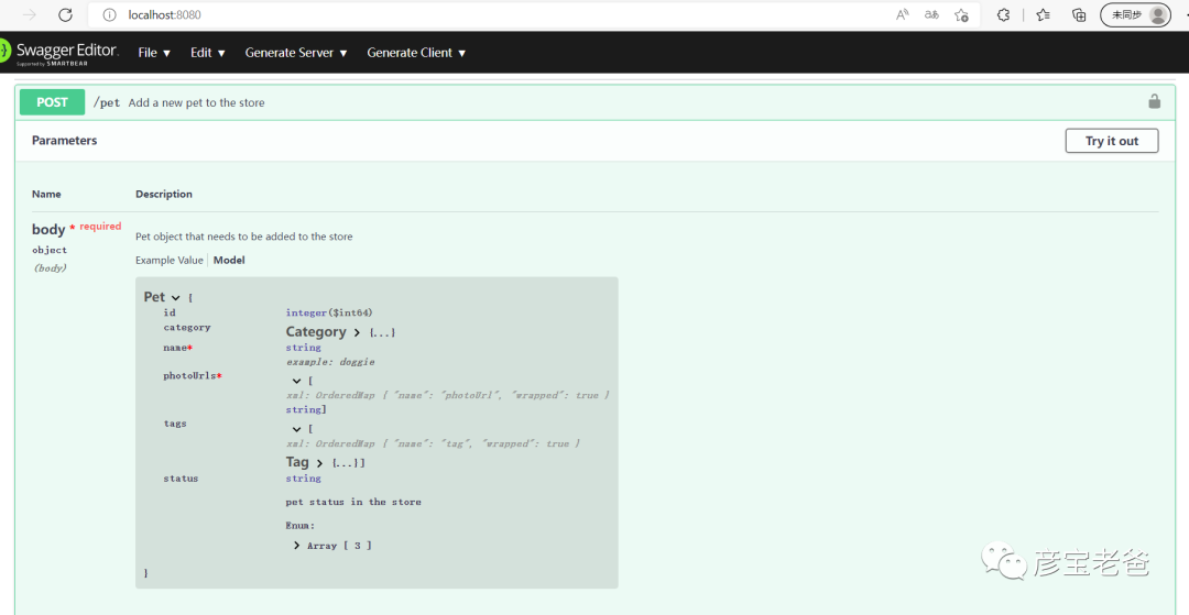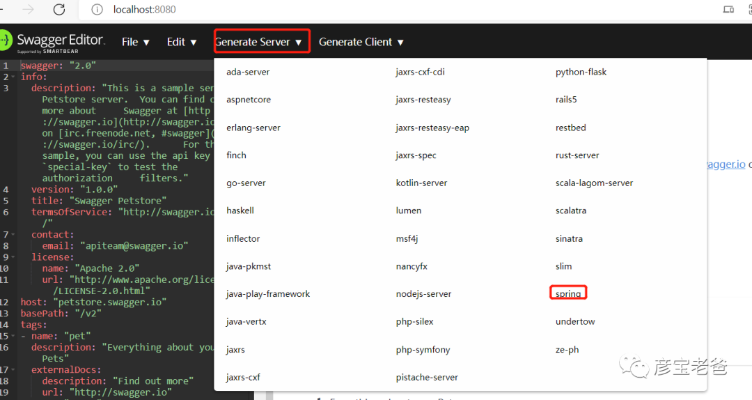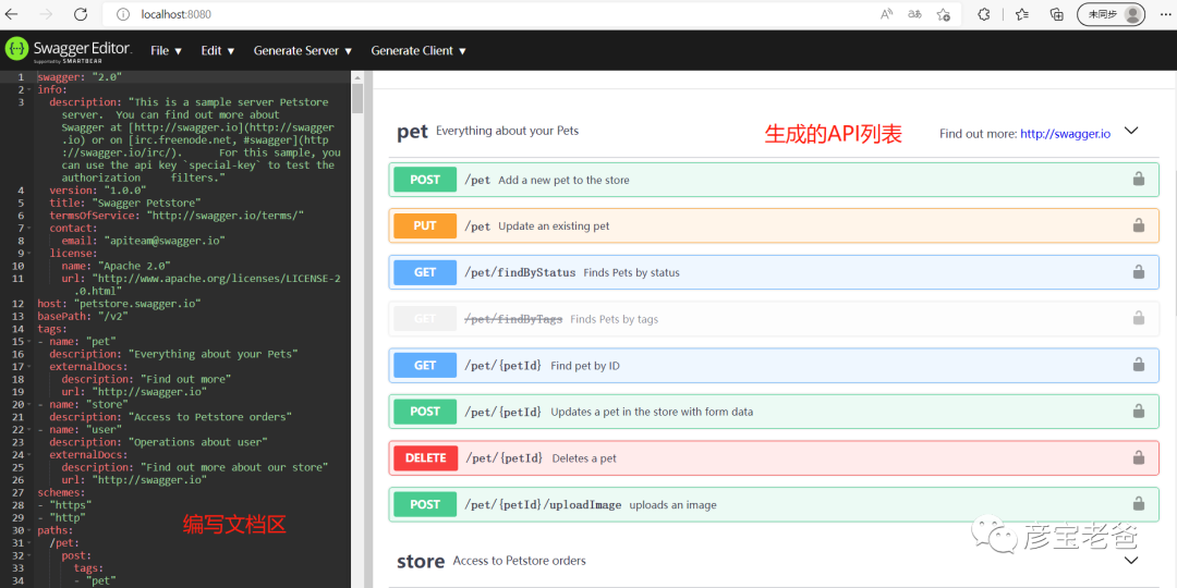 方式B:通过Swagger Editor编写文档生成server端、client端代码