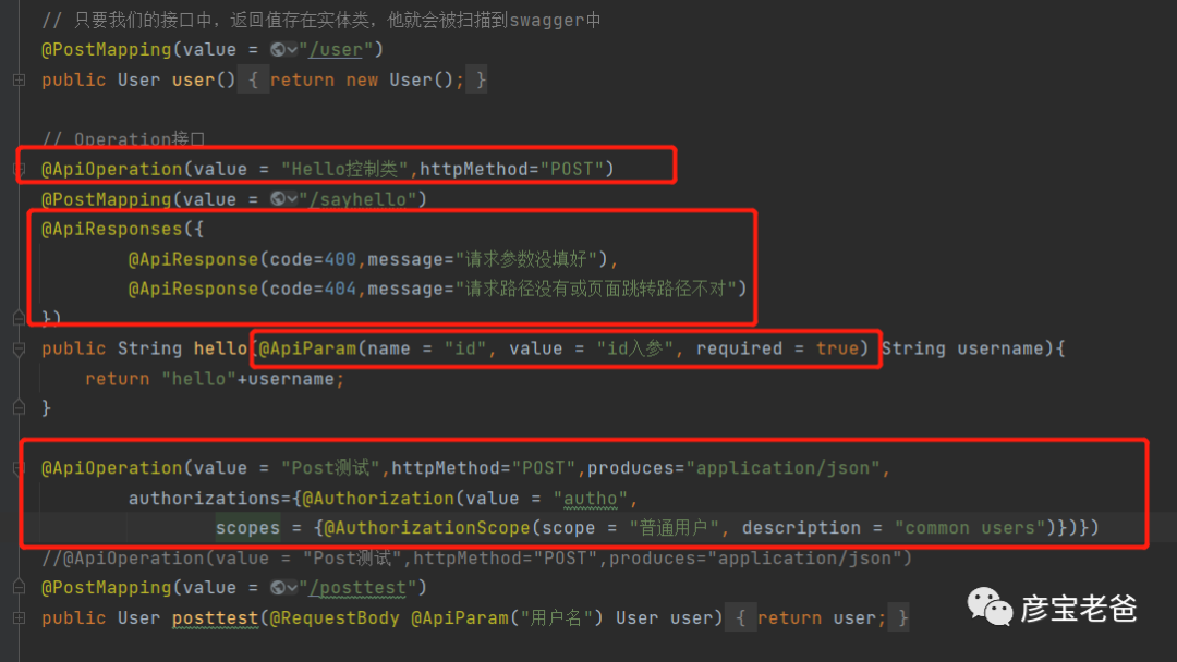 API注解可以在controller里加,也可以在Bean里,看具体需要