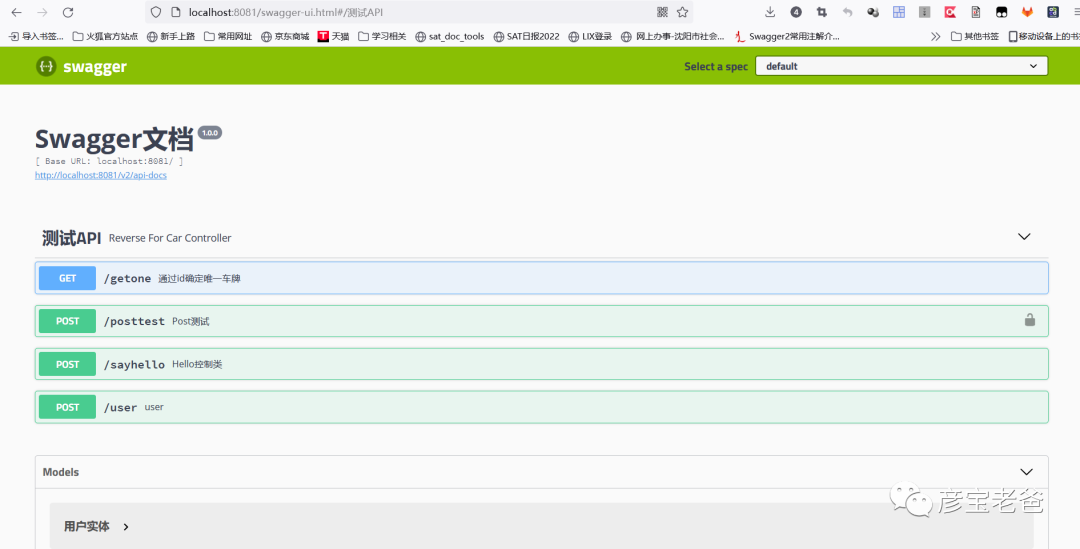在application.properties中设置好端口号,启动程序后在浏览器中输入url:http://localhost:8081/swagger-ui.html#