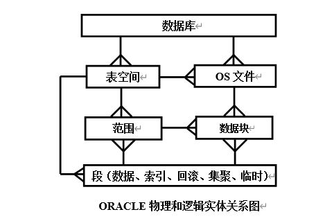 逻辑结构:由表空间、段、范围、数据块、模式对象组成,通过逻辑结构控制磁盘空间的使用。