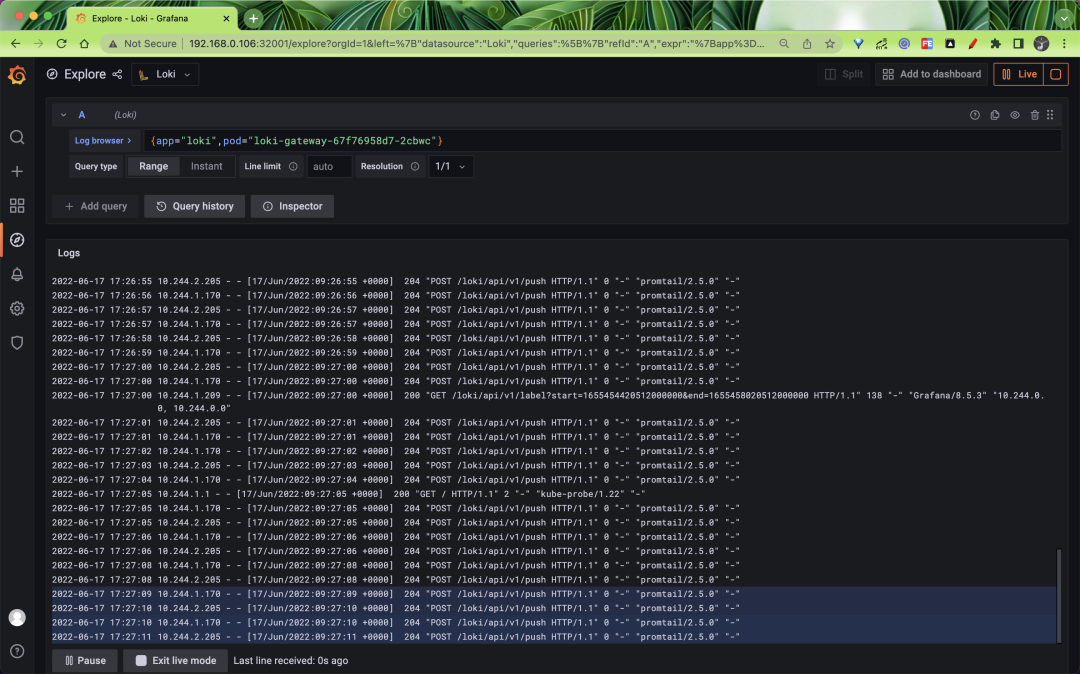 10.244.1.170 - - [17/Jun/2022:08:09:03 +0000] 204 "POST /loki/api/v1/push HTTP/1.1" 0 "-" "promtail/2.5.0" "-"