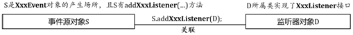 java.awt.Component是按钮、标签、文本框、容器、选择框、列表框等的超类,其中定义了一组关联方法,如addActionListener(ActionListener x)、addKeyListener(KeyListener x)等。因此,各可视化组件能方便地与监听器建立关联。