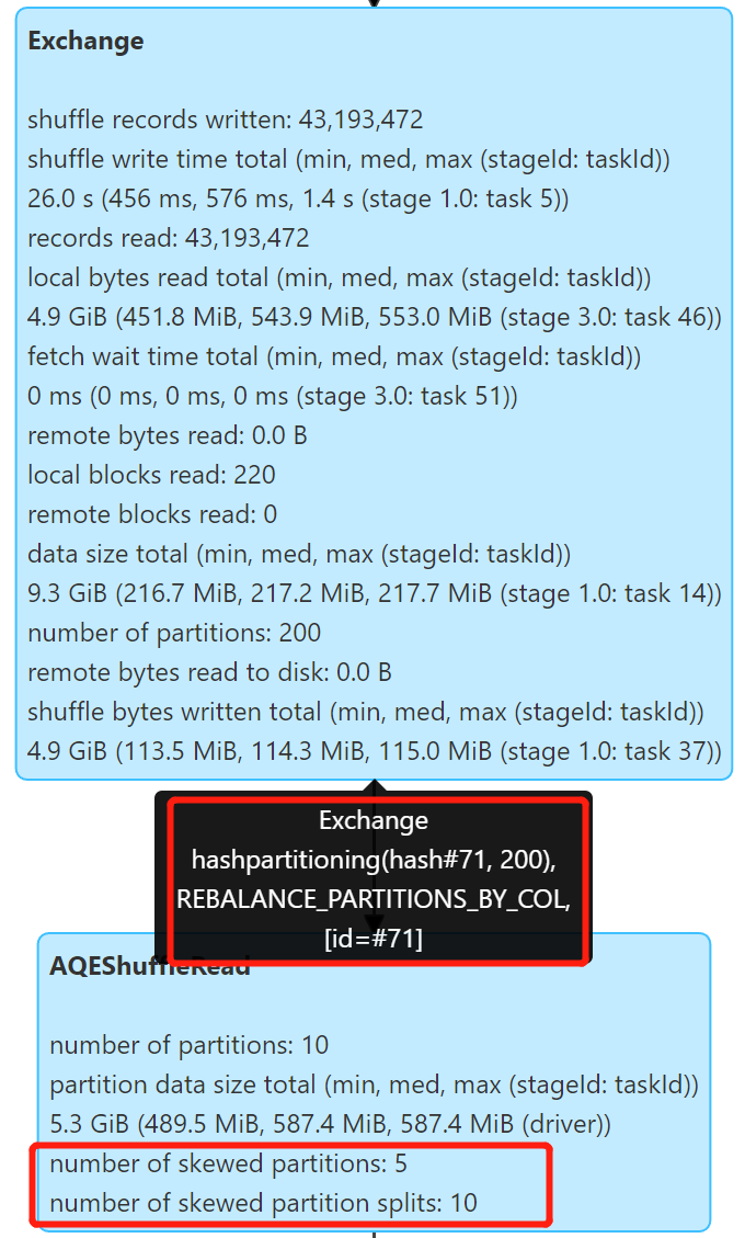 Repartition 操作自动拆分较大分区,产生了 2 × 5 = 10 个文件,文件大小 311 M 左右,很好地解决倾斜问题。