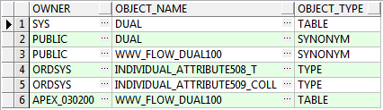 select owner, object_name , object_type from dba_objects where object_name like '%DUAL%';