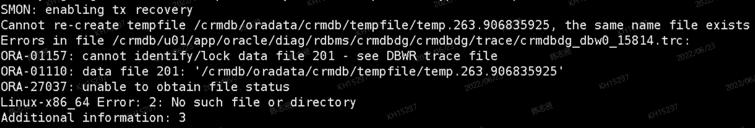临时文件重建失败,为了不在数据库的整个运行过程中,出现问题,需要关闭实例,删除损坏的临时文件,重新启动实例,就会重新创建出一个同名的临时文件,避免在数据库正常运行的过程中,出现问题。