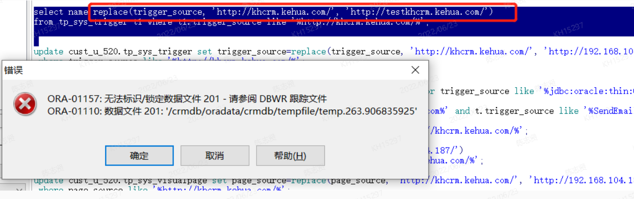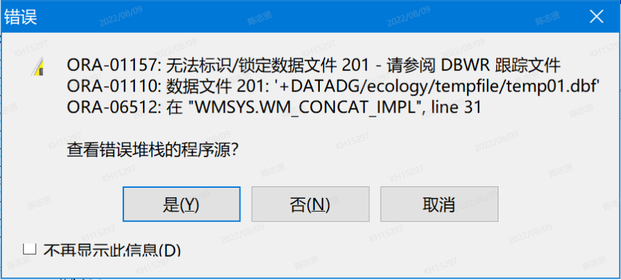 一到公司,就有人来反映了,查询数据出现这个提示: