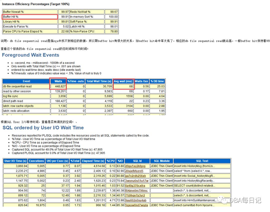 AWR报告中的系统的等待事件中的db file sequential read是否合理?