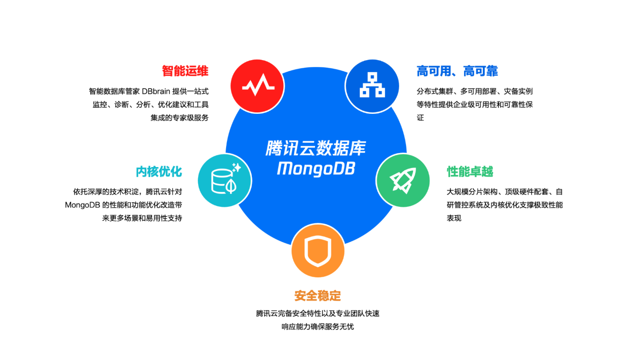 相比用户自建 MongoDB 数据库,腾讯云 MongoDB 在智能运维、可用性、安全性、性能等方面更具优势。同时通过 DBbrain 提供一站式监控的诊断分析,并且能给出相应的优化建议,同时也集成了官方的常用工具,让用户使用更方便。