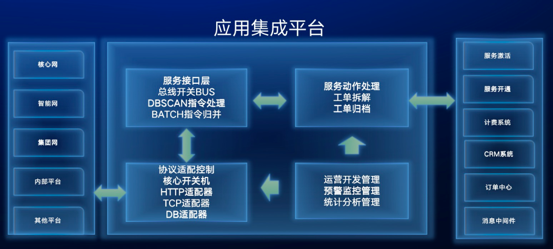 应用集成平台遵循中国移动“磐基”Paas平台技术规范,以“云原生+分布式”全新架构承载中国移动最核心的BOSS系统,满足日益增长的高并发和应用层云化解耦技术要求。上线前,经某省移动严格测试,万里数据库功能测试兼容性通过率达99.99%,3倍于现网压力性能测试指标不低于原Oracle生产库指标,保障了在系统的平滑割接上线。
