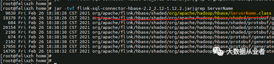然后,查找flink-sql-connector-hbase-2.2_2.12-1.12.2.jar是否存在ServerName类,如图: