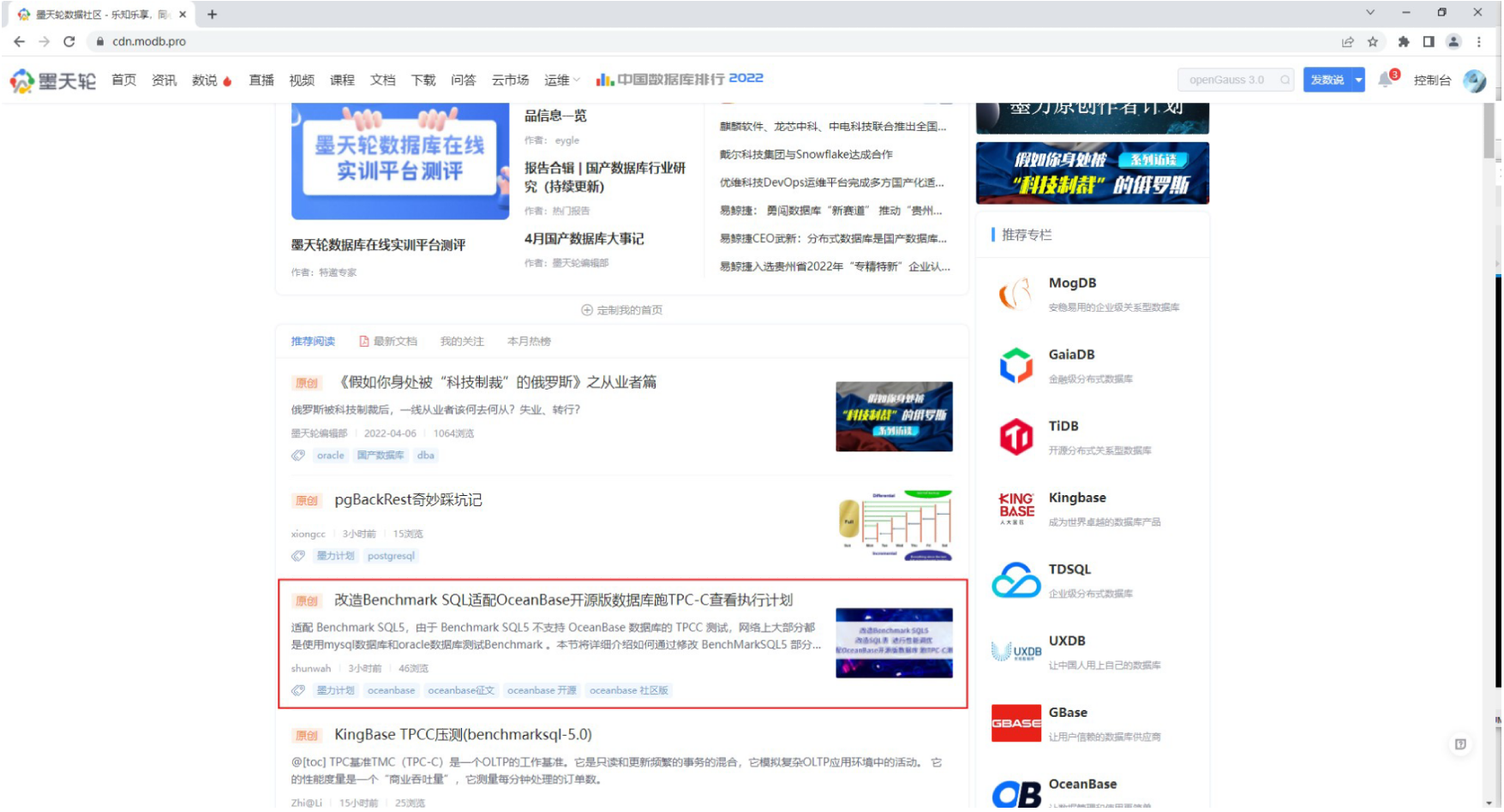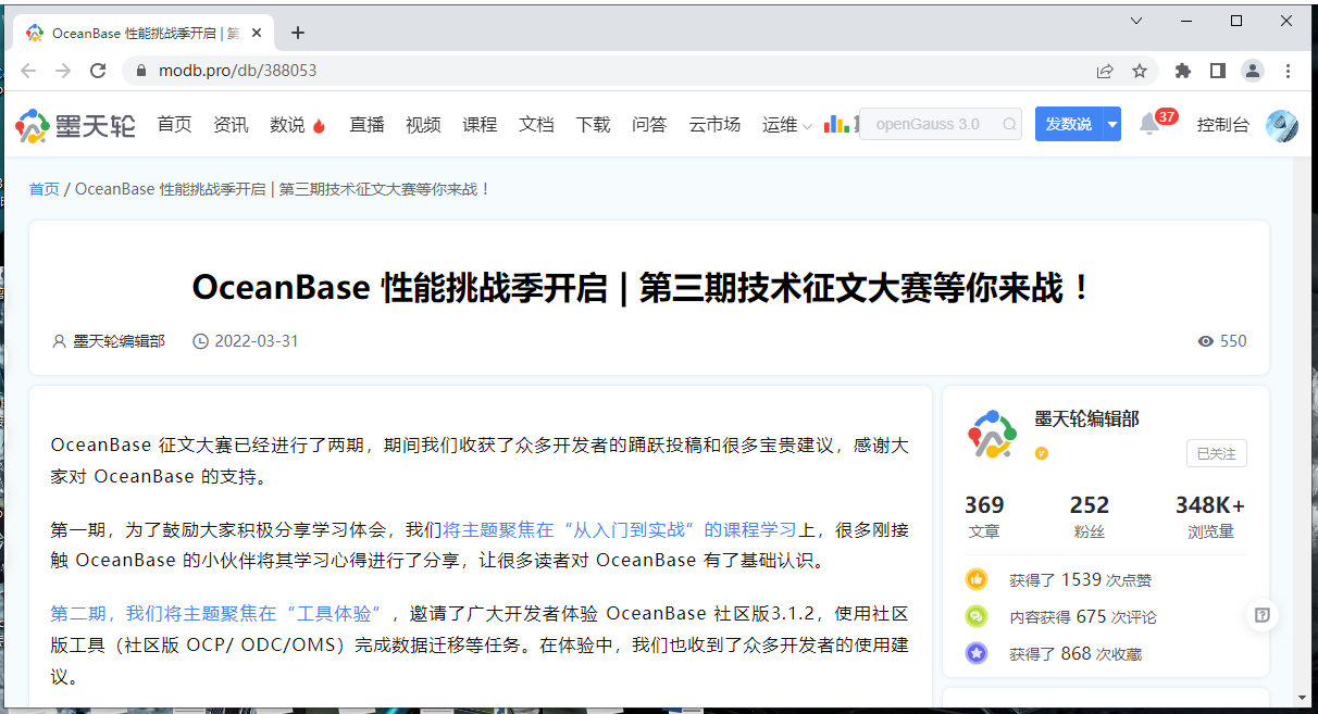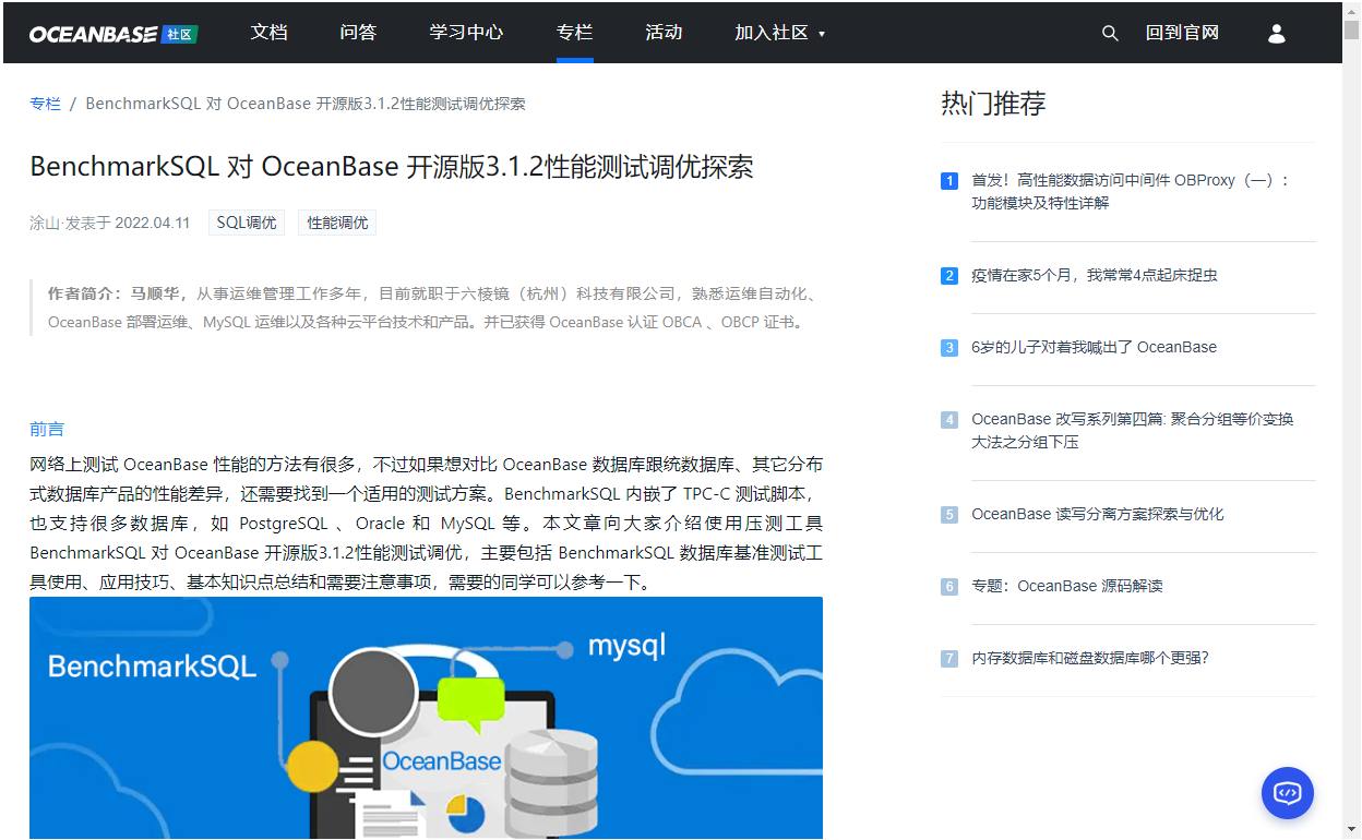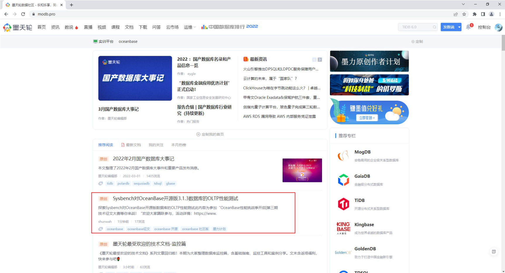 Step1: 文章在 墨天轮社区 首发,并添加标签 #OceanBase 征文 发布。