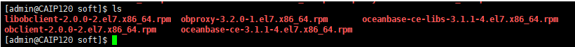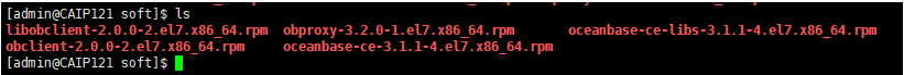 OceanBase 本质上是一个单进程的软件,可执行文件名叫 observer 。可以通过 RPM 包安装,也可以通过源码直接编译安装。手动部署,需要安装 OceanBase 的 OBSERVER 软件 。本次手动测试是通过 RPM 包方式安装。手动部署,需要安装 OceanBase 的 OBSERVER 软件 。(所有目标机器)准备好 OceanBase 的 RPM 包,安装oceanbase-ce oceanbase-ce-libs libobclient obclient