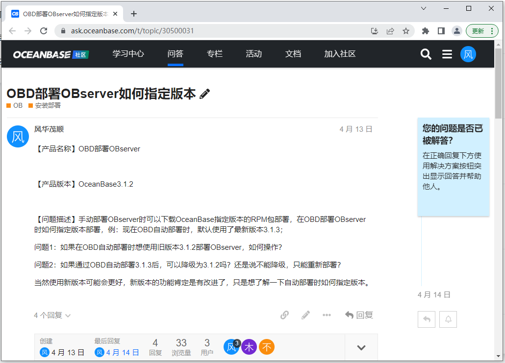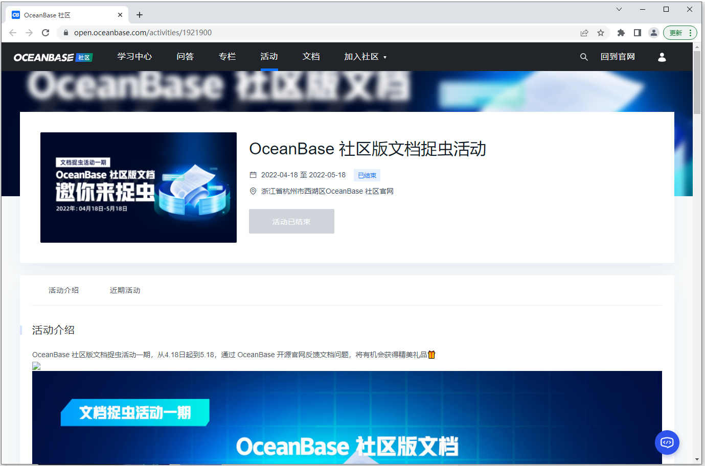 活动链接 https://ask.oceanbase.com/t/topic/20400081