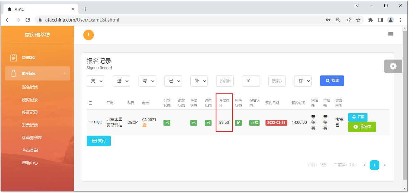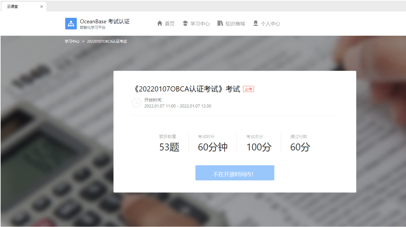 2022年03月26日:第一次报名参加OceanBase OBCP中级认证考试,未通过考试。