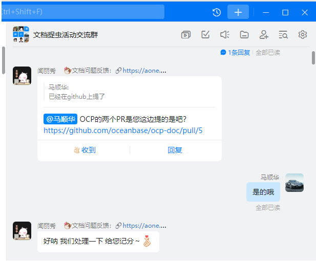 示例3:希望为 OceanBase 社区版第一本教程贡献力量,给文档找 bug,助力更多人更快上手使用 OceanBase 。
