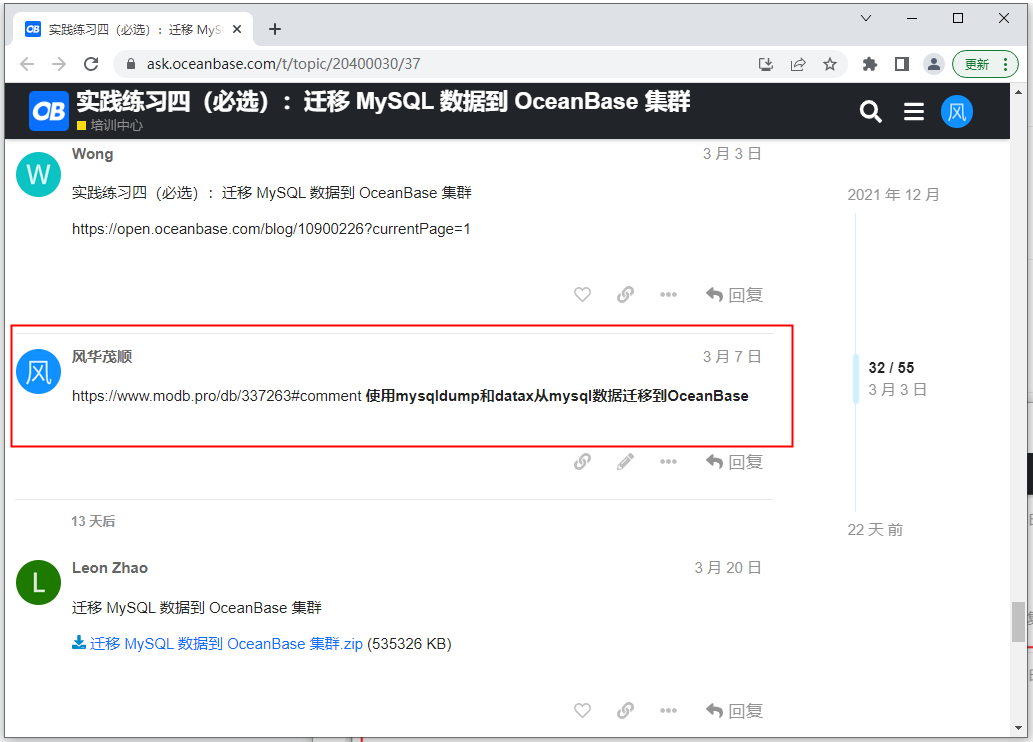 https://www.modb.pro/db/337263 使用mysqldump和datax从mysql数据迁移到OceanBase