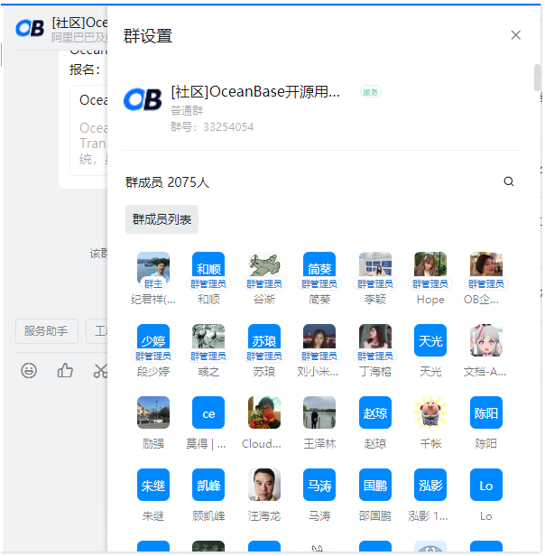 2021年12月07日加入[社区]OceanBase开源用户群,[社区]OceanBase开源用户群,群号:33254054